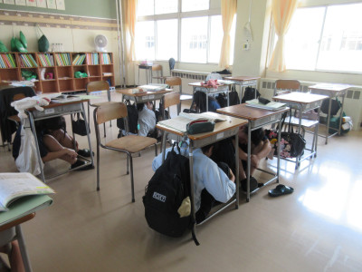 生徒はそれぞれ授業を担当している先生の指示に従って、机の下に隠れるなど身の安全を確保し、そして速やかに避難していました。